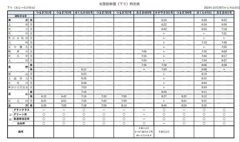 北陸新幹線、11月の臨時列車のダイヤを発表(2/15)