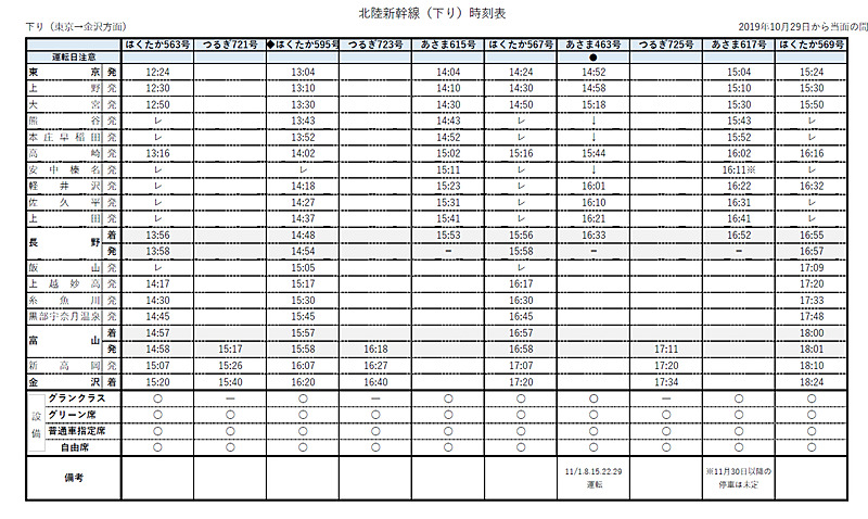 北陸新幹線、11月の臨時列車のダイヤを発表(5/15)