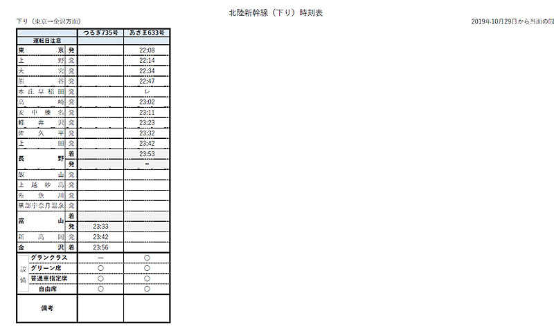 北陸新幹線、11月の臨時列車のダイヤを発表(8/15)