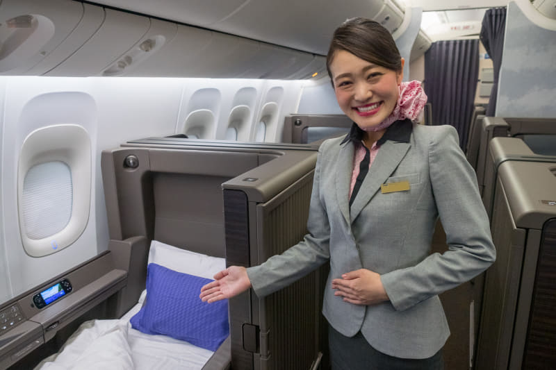 ANA国際線の新シート紹介。ファーストクラスのシートモニターは4K対応43インチ。ビジネスクラスは後ろ向き席採用で約1.3倍の広さに