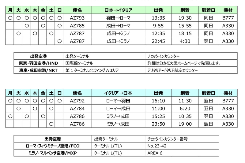 アリタリア航空、羽田~ローマ線就航を5月に延期。成田~ローマ/ミラノも4月は運休