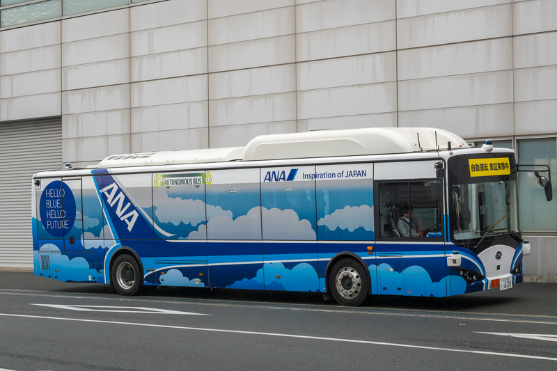 • ANA、大型電気自動運転バスによるスタッフ移動を羽田空港で実証実験。2021年内に旅客輸送の試験運用へ