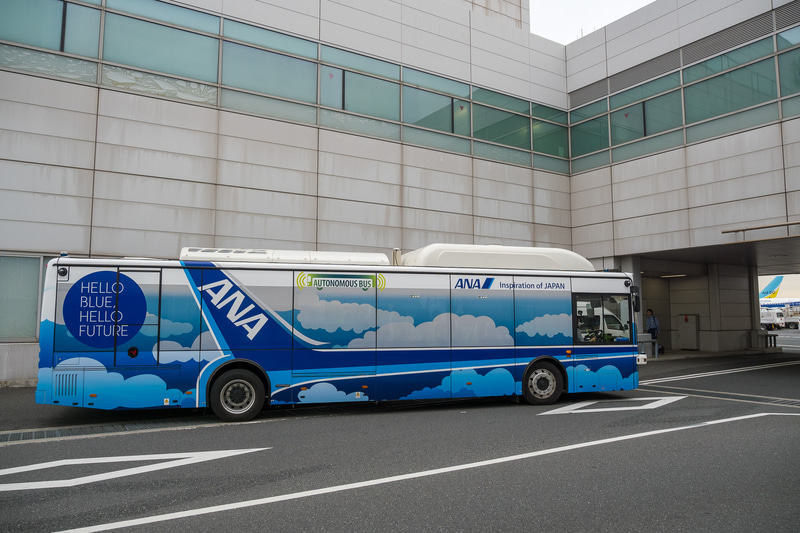 • ANA、大型電気自動運転バスによるスタッフ移動を羽田空港で実証実験。2021年内に旅客輸送の試験運用へ