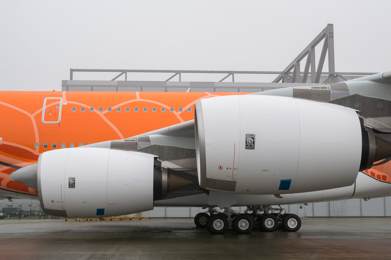 • エアバスとANA、オレンジのA380型機をお披露目。3号機がハンブルク工場でロールアウト