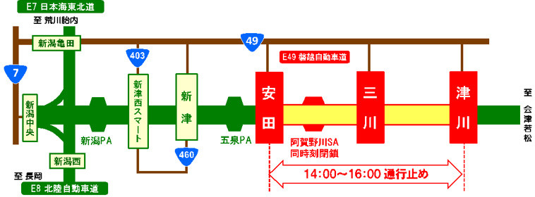 NEXCO東日本、磐越道の津川IC~安田IC間で1月31日に2時間の通行止め