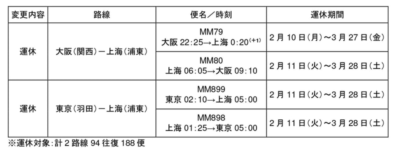 ANA、新型コロナウイルス拡大で中国路線の運休/減便を拡大。機材小型化も