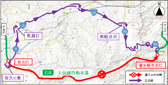 NEXCO東日本、上信越道の佐久IC→碓氷軽井沢IC間で緊急の夜間通行止め