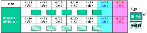 NEXCO中日本、舞鶴若狭道の小浜IC~敦賀JCT間で夜間通行止め