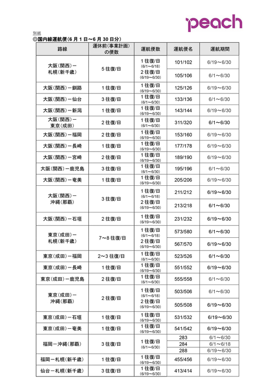ピーチ、国内線各路線で追加減便。国際線の全便運休は5月31日まで継続
