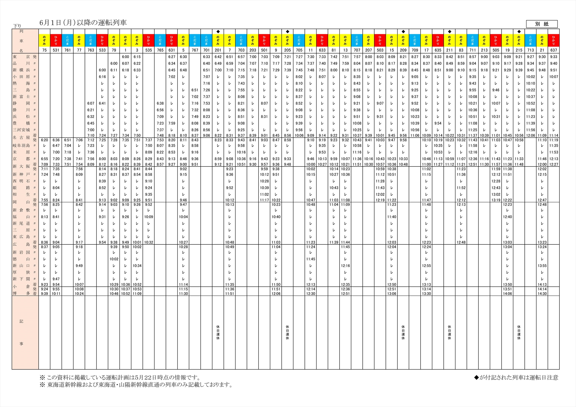 東海道新幹線、6月1日以降は全ての定期列車を運転(3/10)