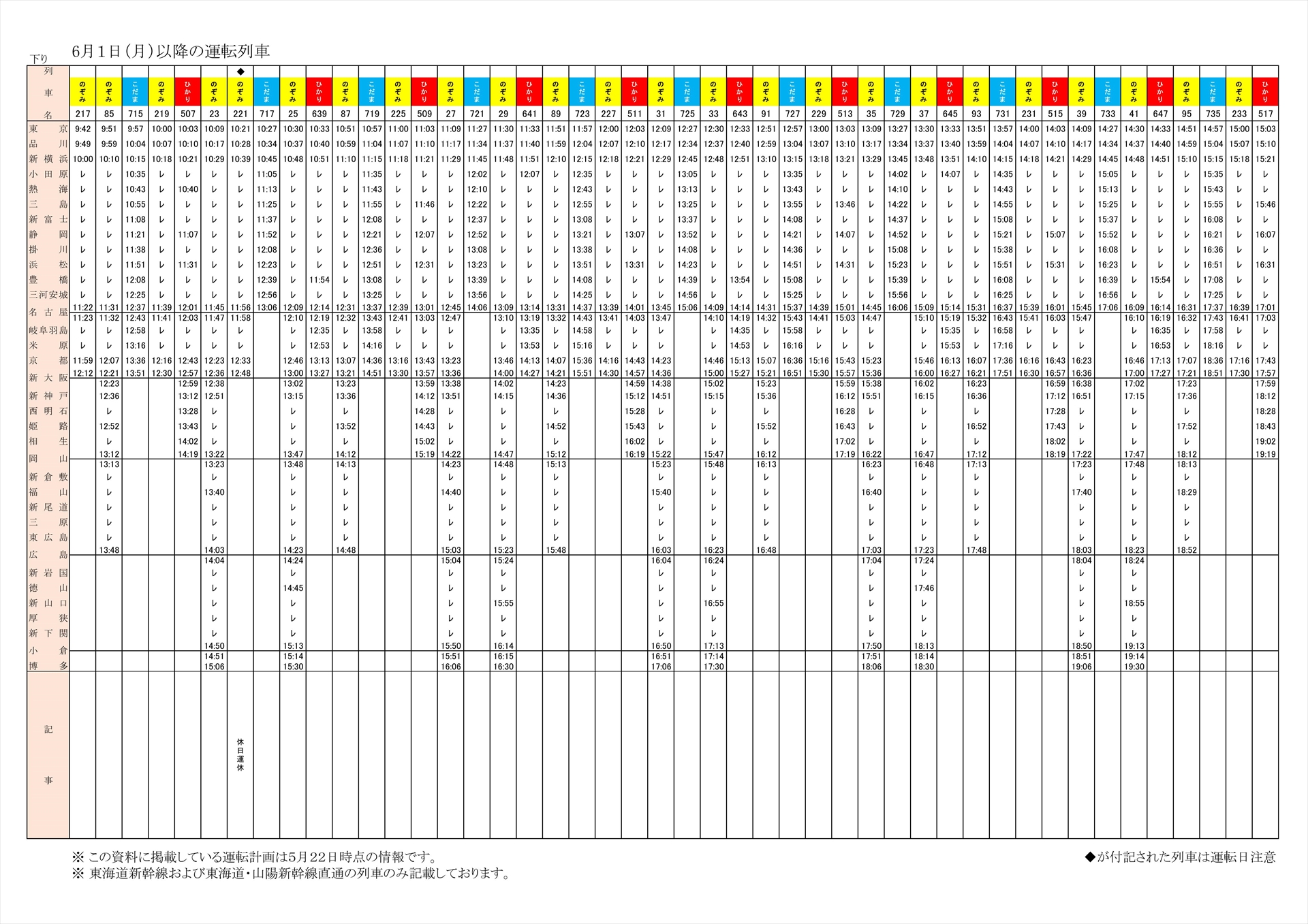 • JR東海、6月19日/21日に東海道新幹線を計12本増発