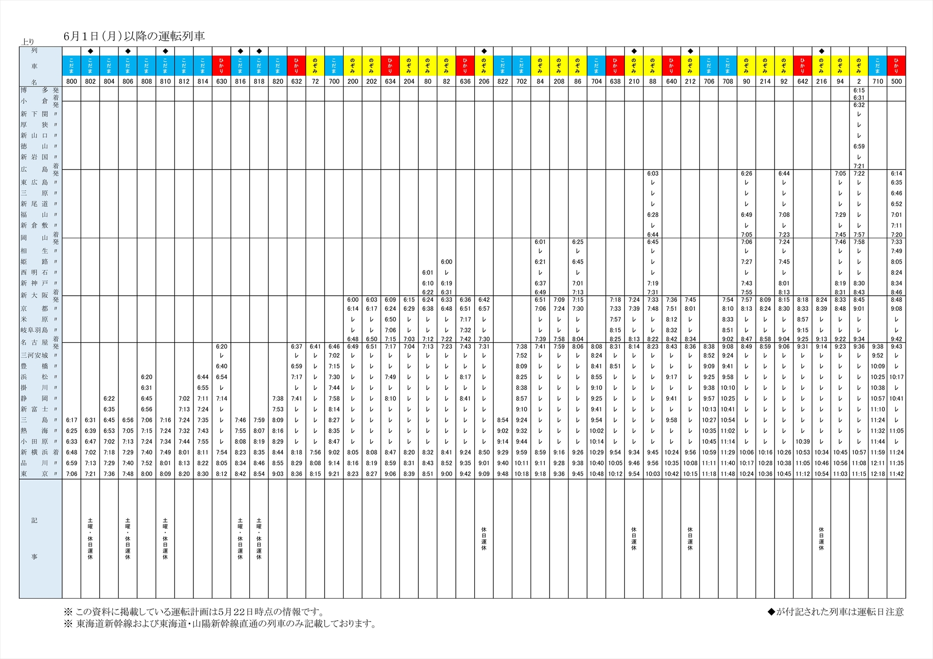 東海道新幹線、6月1日以降は全ての定期列車を運転(7/10)