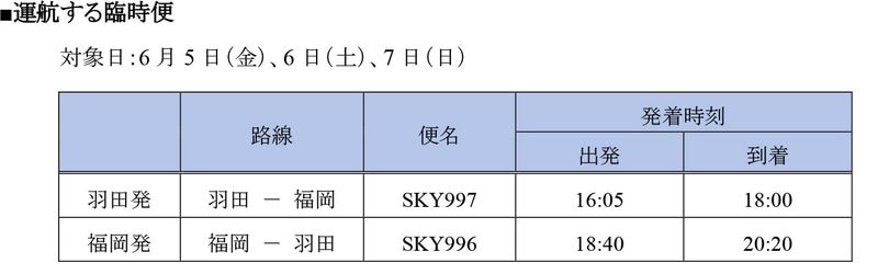 スカイマーク、6月12日~18日の国内線の運航計画を発表