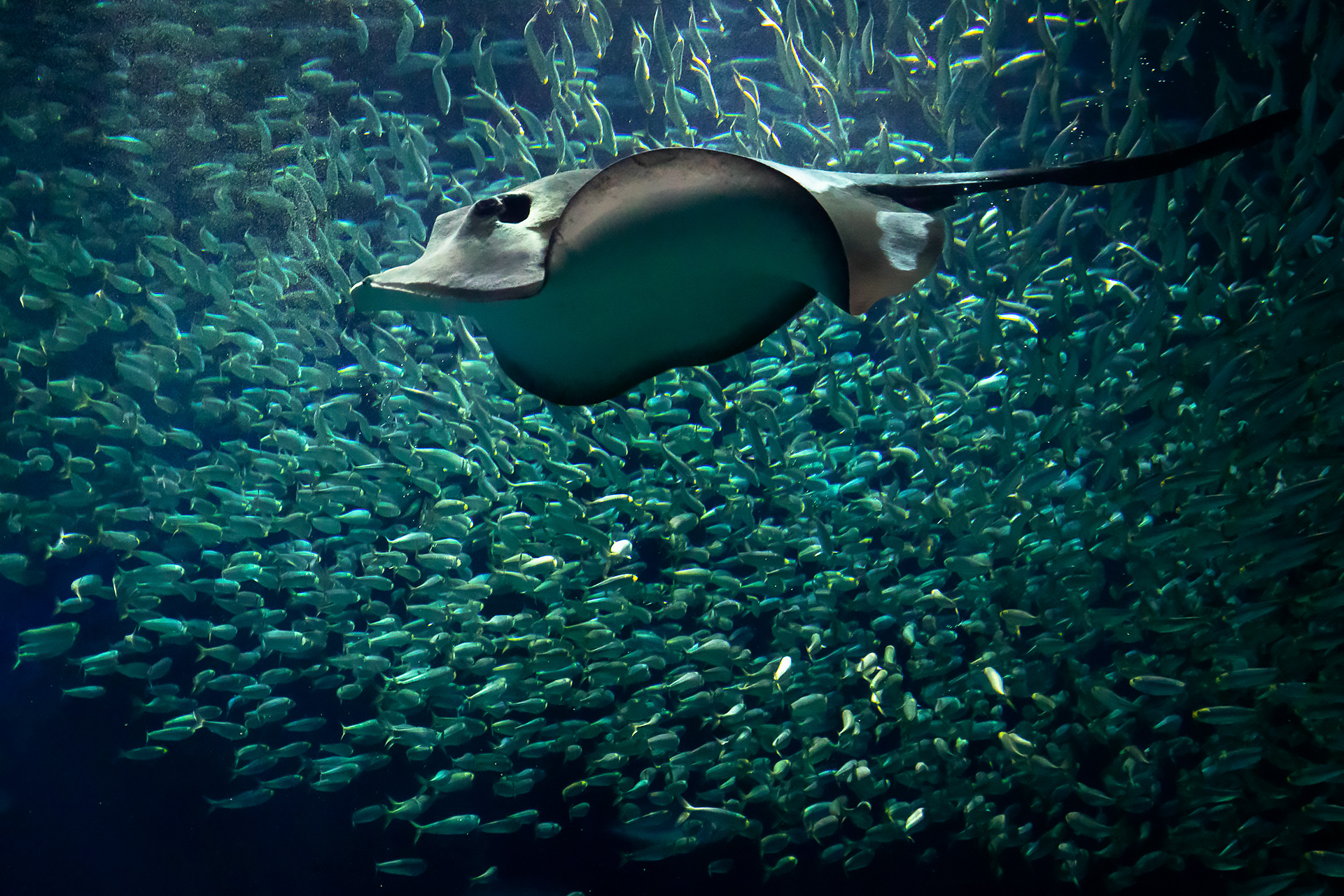 マリンワールド海の中道、アザラシが円柱型のスクリーンに登場する特別映像。西鉄福岡(天神)駅で先行放映