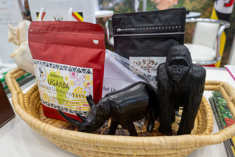 【ツーリズムEXPO 2020】希少なコーヒーを試飲できるウガンダブース。木彫りのゴリラなど特産品が当たる