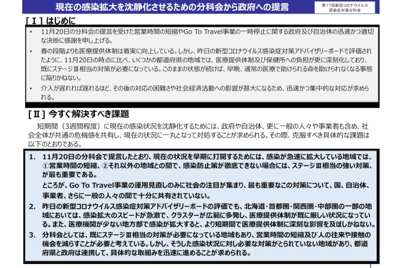 新型コロナ対策分科会、Go To トラベルの運用見直しを提言