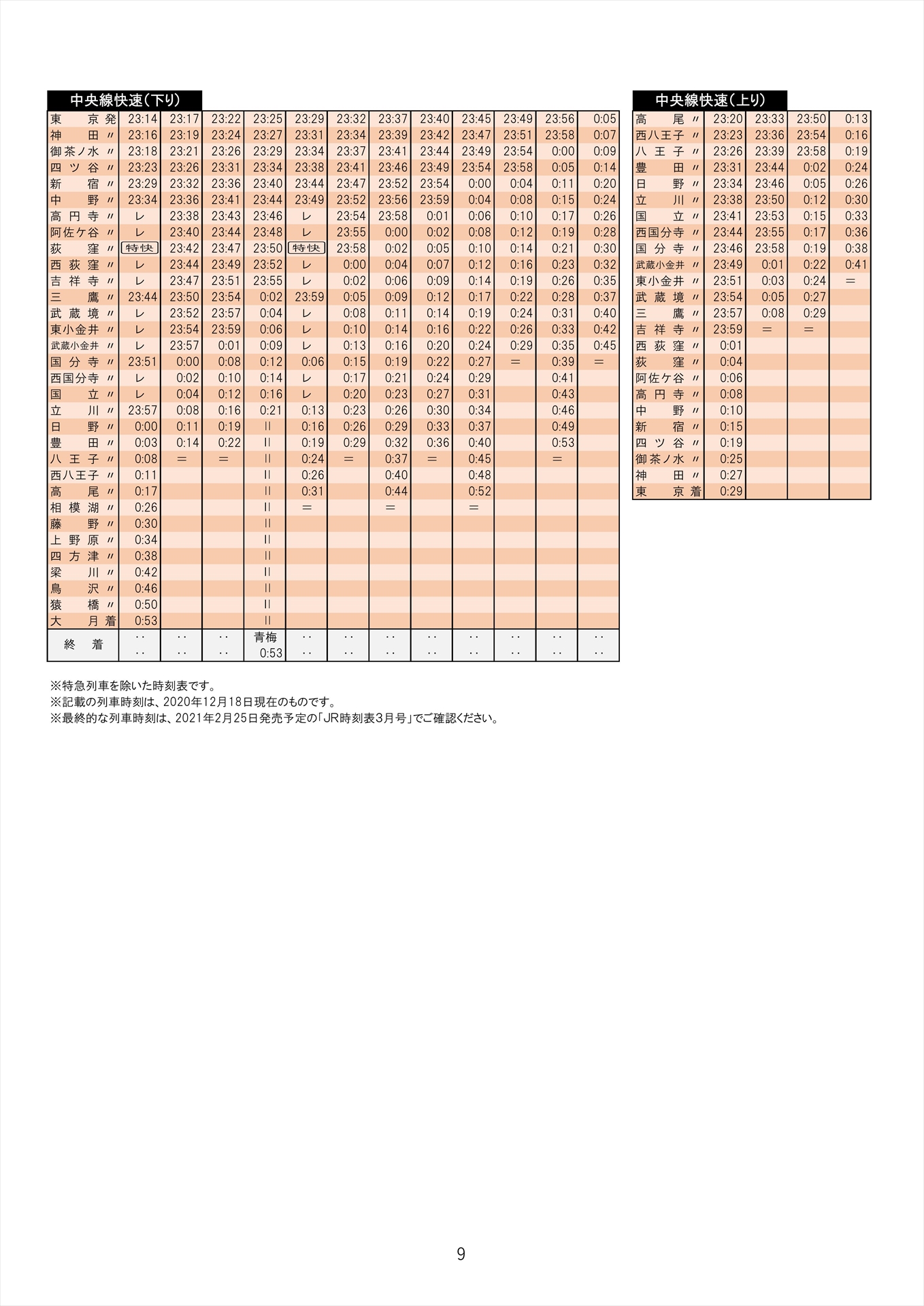 • JR東日本、終電繰り上げの目安を発表。山手線は16~20分程度、中央線快速は16~30分程度繰り上げ