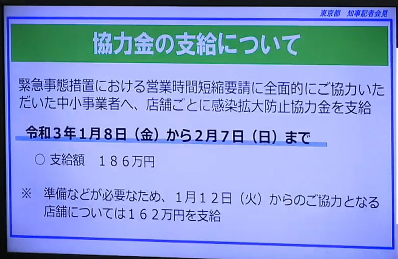 • 1都3県の緊急事態宣言発出。飲食店は20時までの時短要請。菅総理「今一度制約のある生活をお願いする」