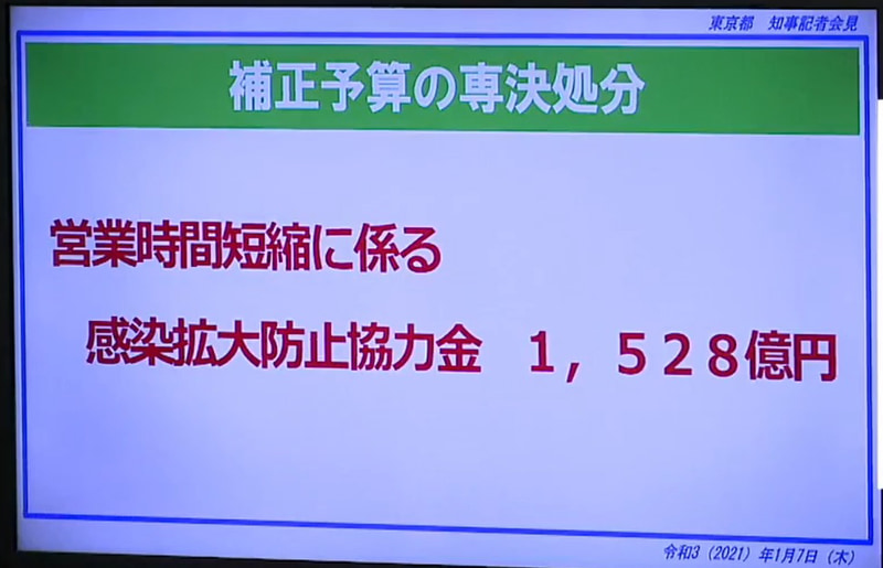 • 1都3県の緊急事態宣言発出。飲食店は20時までの時短要請。菅総理「今一度制約のある生活をお願いする」