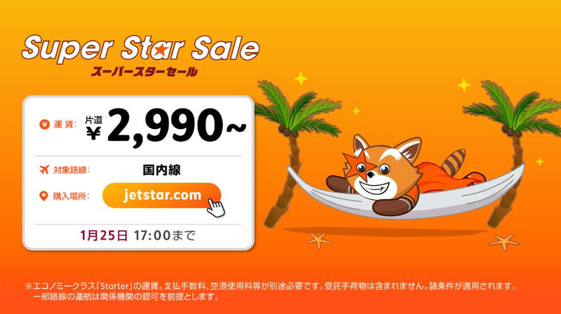 ジェットスター、往復購入で復路9円のスーパースターセール