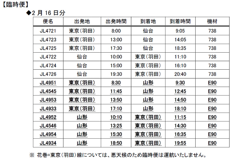 JAL、福島県沖地震で東北エリアの臨時便・機材大型化
