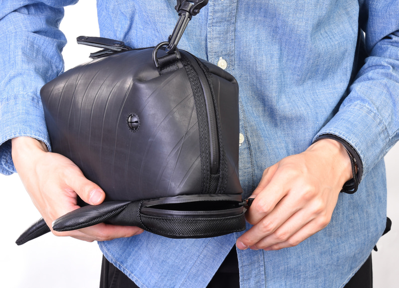 モンドデザイン、廃タイヤ「SEAL」とパラシュートメーカー「藤倉航装」がコラボした軽量ウエストバッグ