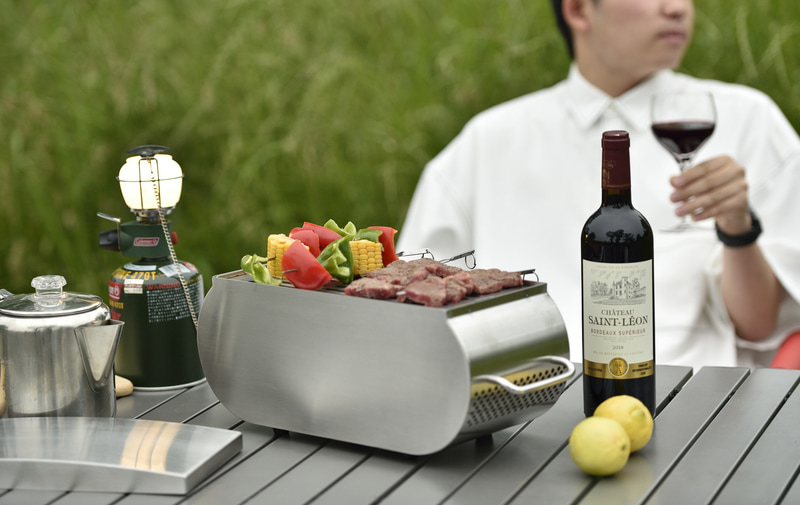 板金職人が作る総ステンレス炭火グリル。分割炭入れで火力調節に対応(2/5)