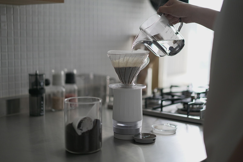 amadana、ハンドドリップ向けコーヒースケール。計量と抽出時間計測を同時に