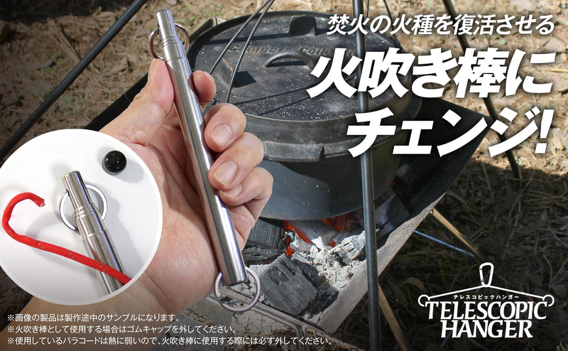 キャンプで使える伸縮式ハンガー兼火吹き棒「テレスコピックハンガー」