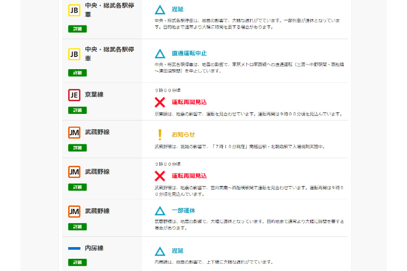 JR東日本、地震の影響で京葉線・湘南新宿ライン・武蔵野線で運休発生