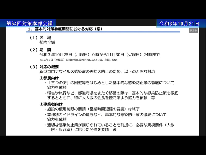 東京都、10月25日から基本的対策徹底期間へ移行。時短営業は解除
