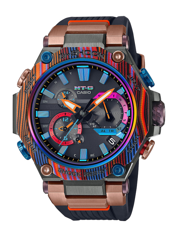 積層カーボンのG-SHOCK「MTG-B2000YBD/B2000XD」。メタルとレジンの積層バンド採用