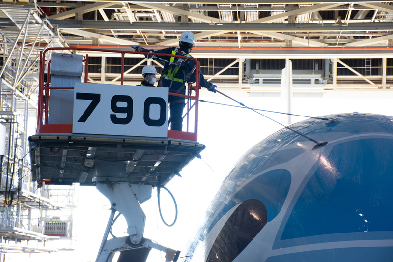 ANAのA380、初日の出フライトに向け水洗い。「きれいな飛行機できれいな朝日を見てほしい」(29/51)