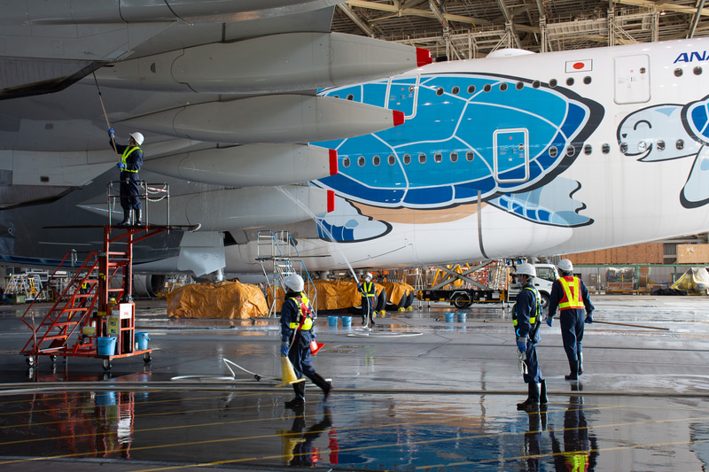 ANAのA380、初日の出フライトに向け水洗い。「きれいな飛行機できれいな朝日を見てほしい」(34/51)