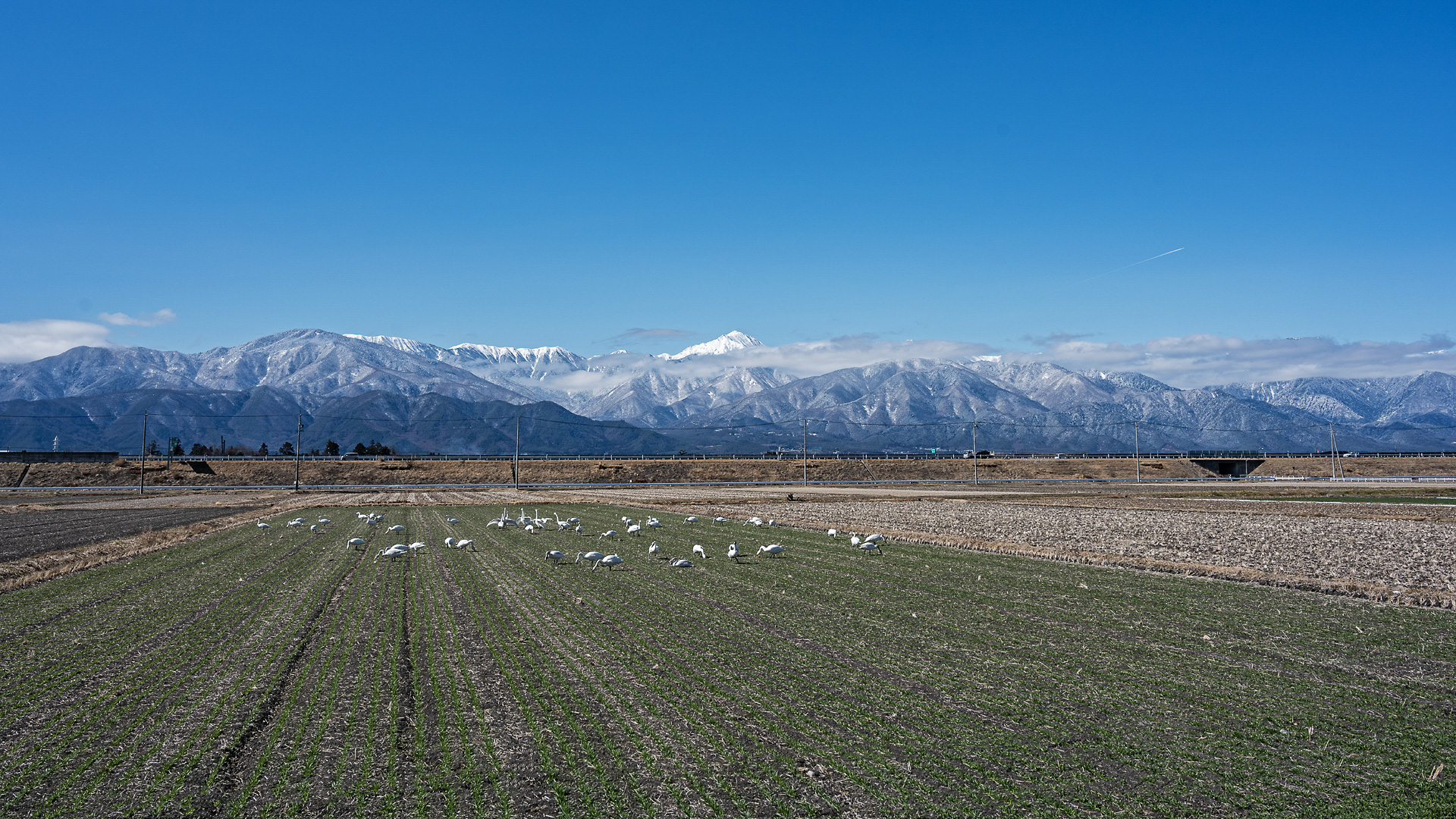 白鳥飛来する安曇野(長野県)