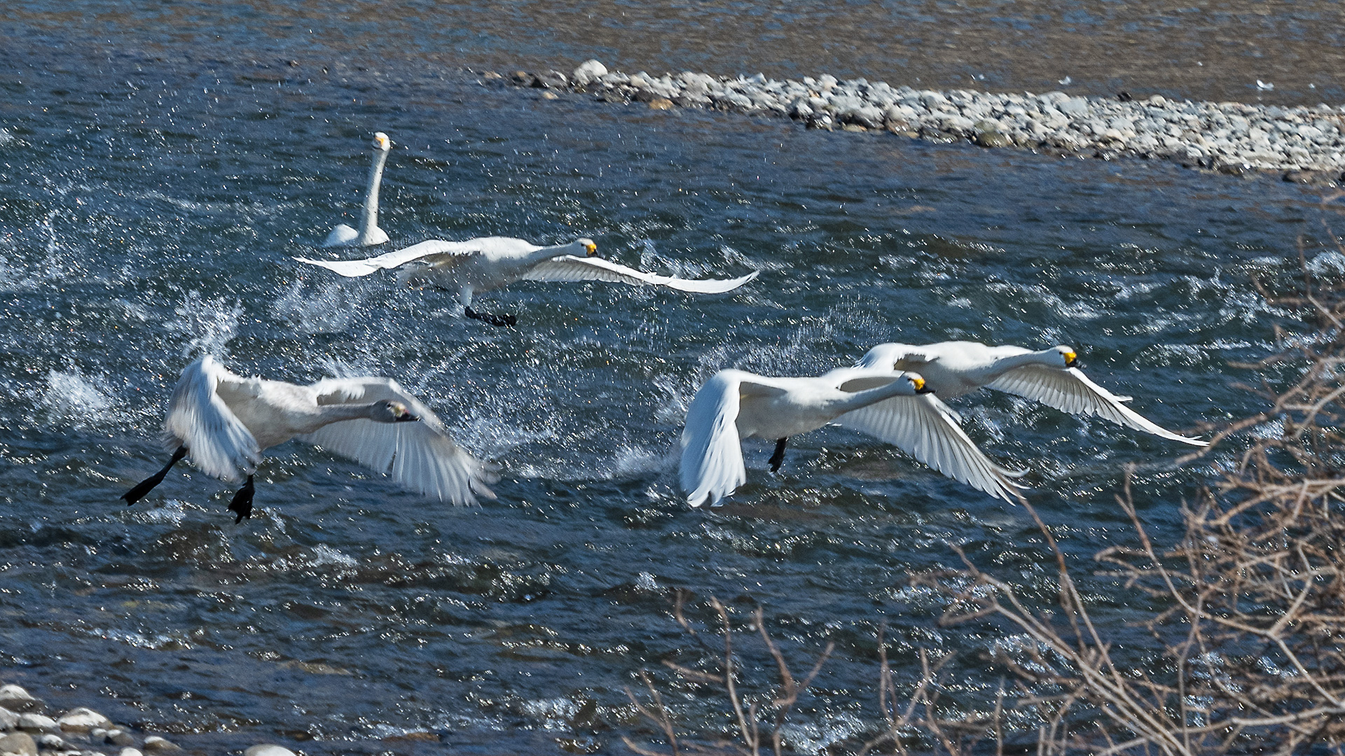 長嶺大池、ハクチョウの飛来数が過去最高の700羽を突破