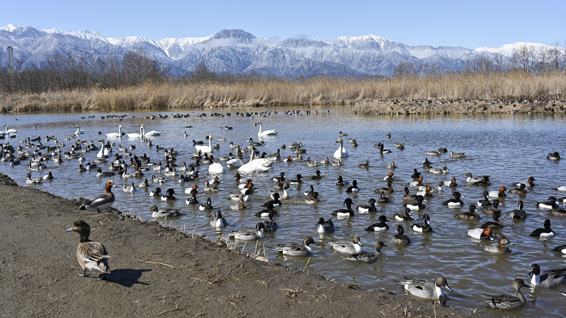 長嶺大池、ハクチョウの飛来数が過去最高の700羽を突破