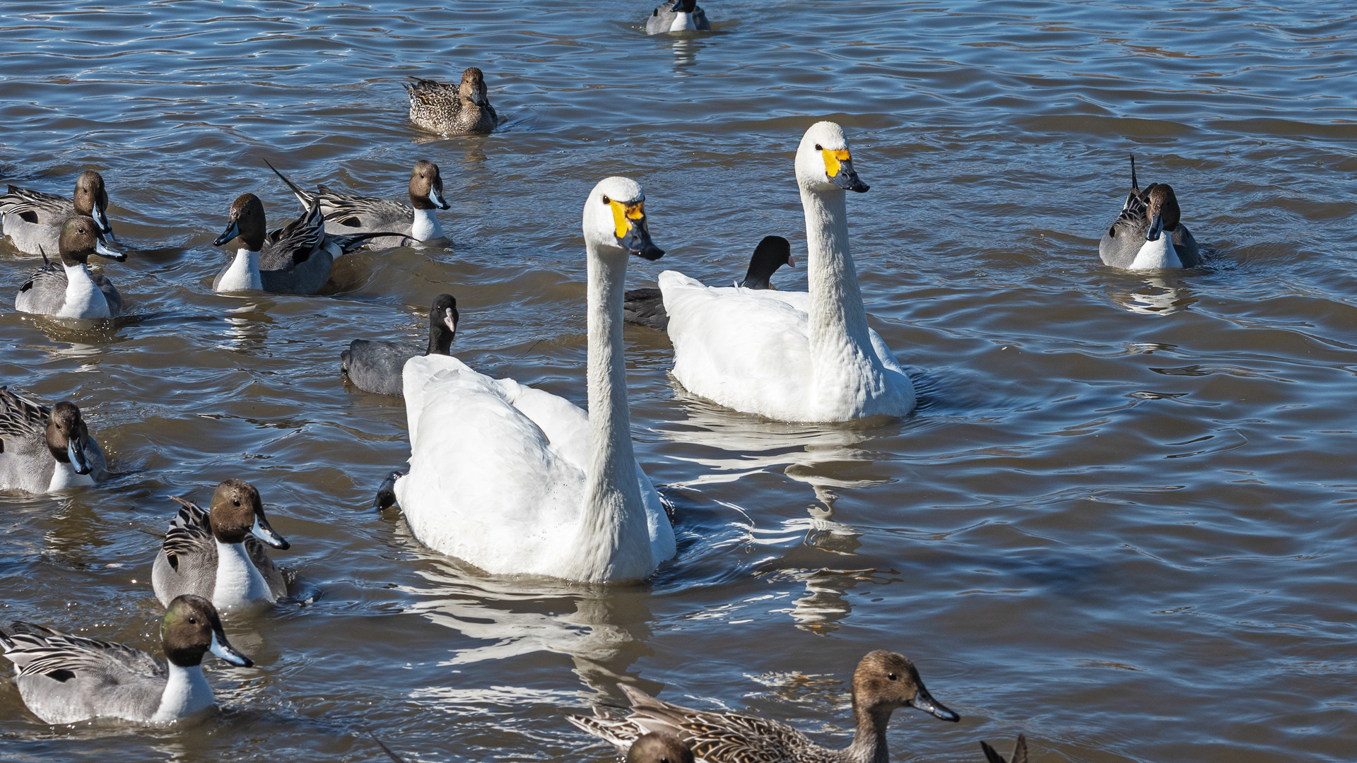 長嶺大池、ハクチョウの飛来数が過去最高の700羽を突破
