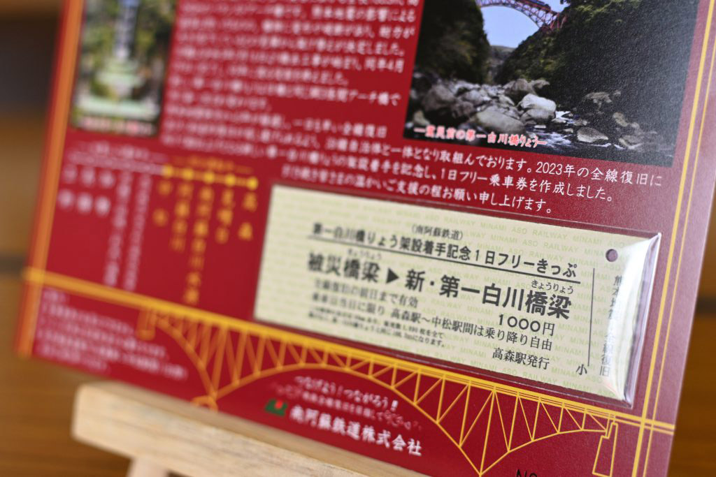 南阿蘇鉄道、「第一白川橋りょう架設着手記念1日フリーきっぷ」2月12日発売。橋長166.3mに合わせて1890個発売