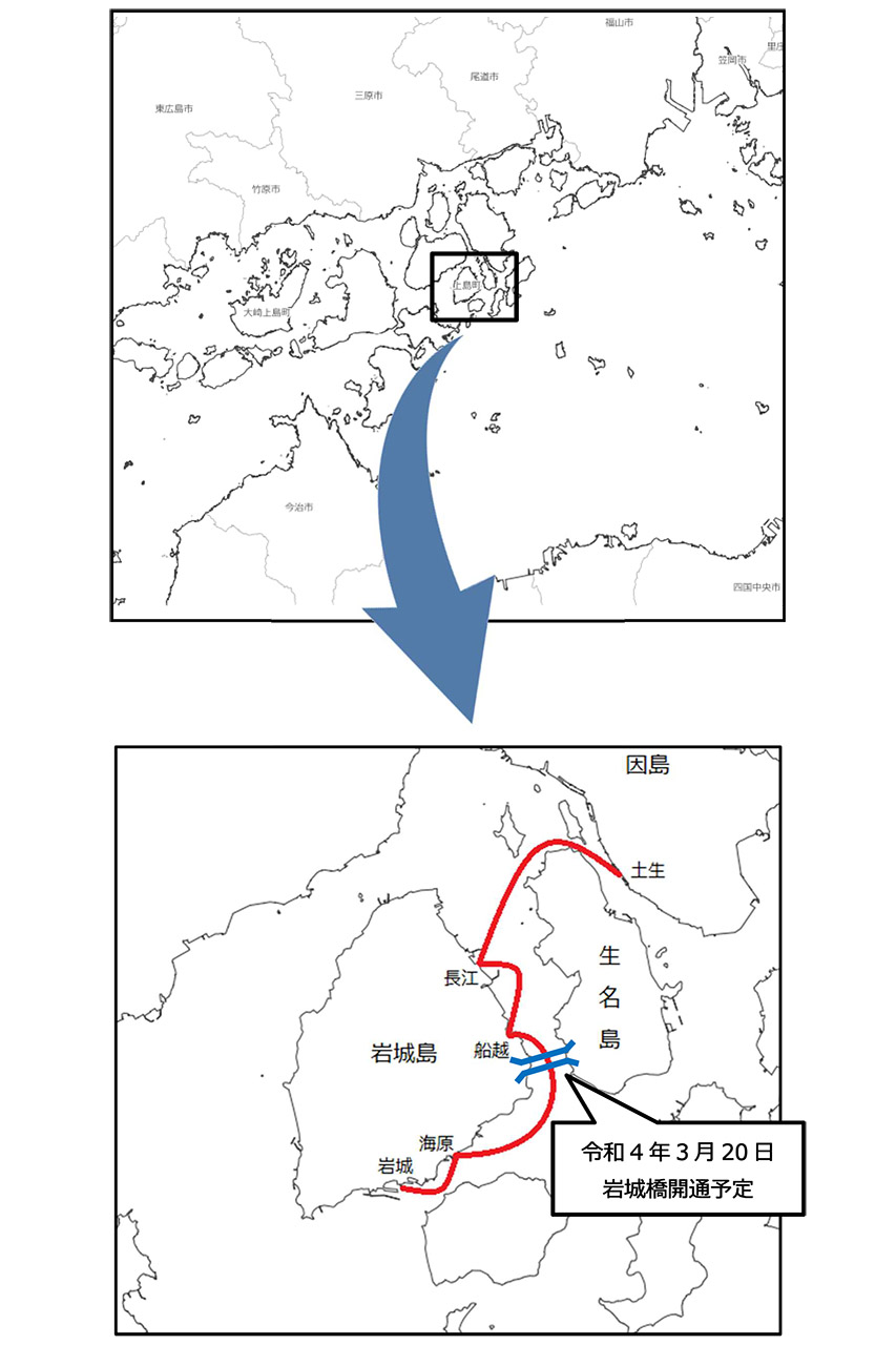岩城汽船、岩城~土生(因島)航路を3月19日廃止。68年の歴史に幕。岩城橋開通のため