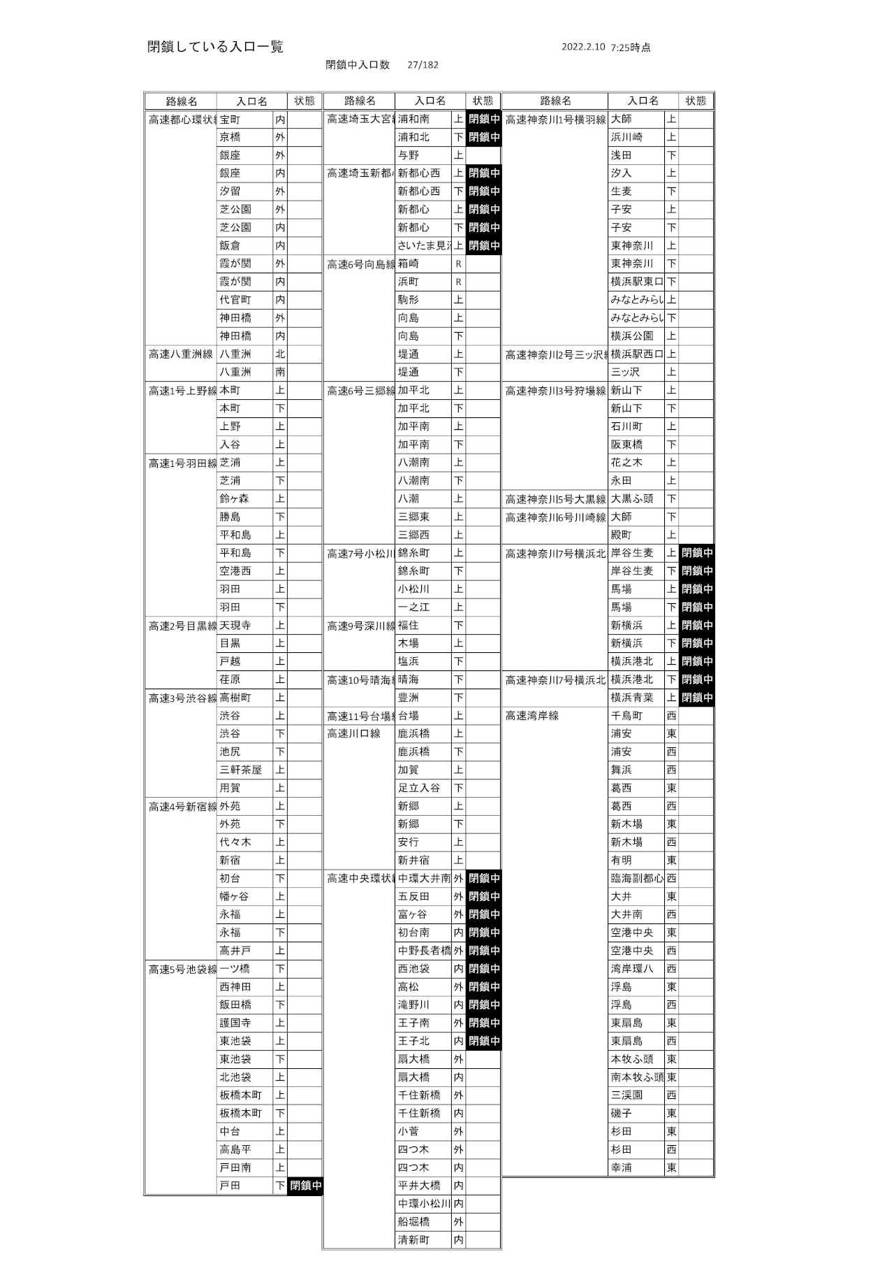 首都高、降雪で10日から予防的通行止め。入口閉鎖も