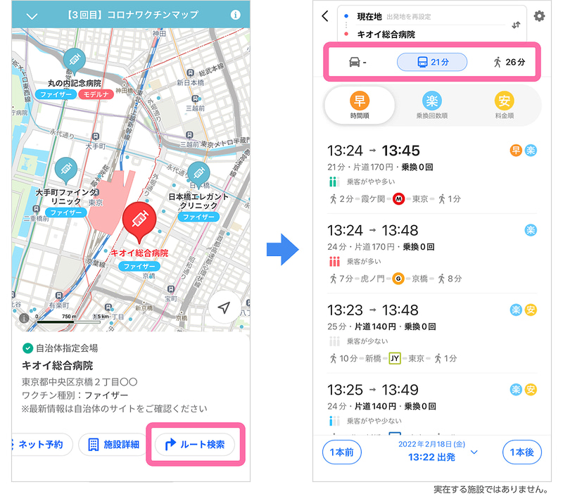 Yahoo!乗換案内、ワクチン大規模接種会場への無料送迎バス検索機能