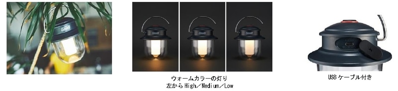 コールマン、充電式LEDランタン2モデル。4段階調節のウォームカラーで優しい明かり(3/4)