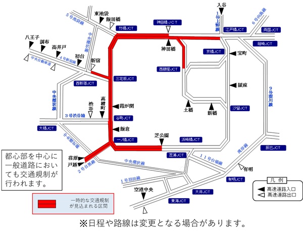 国葬で首都高・一般道の交通規制。27日は12~21時ごろに首都高で通行止めなど