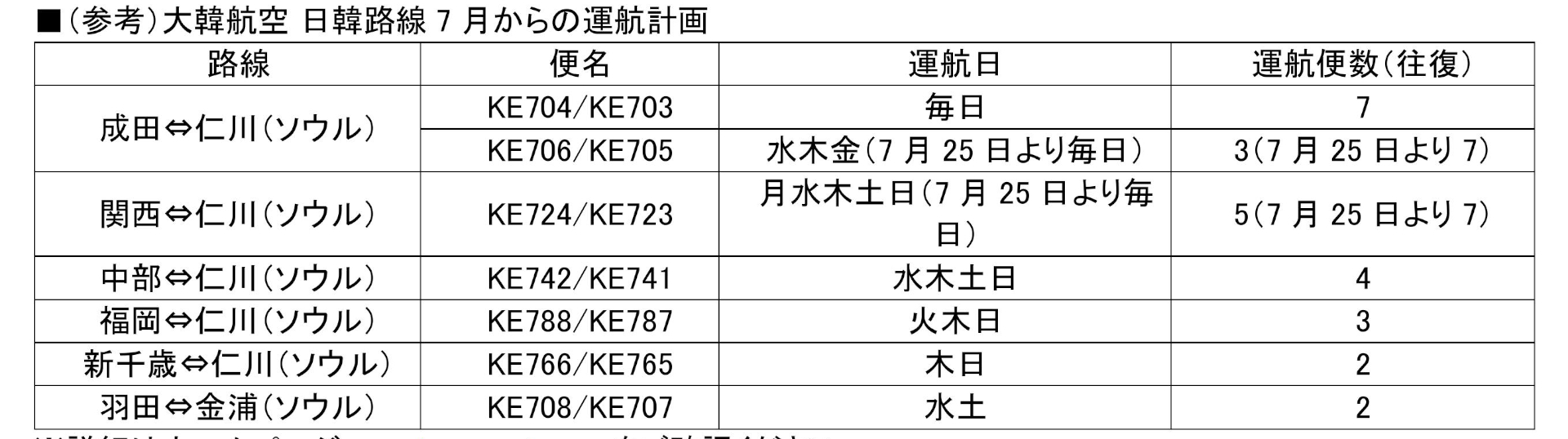 大韓航空、羽田~金浦を7月25日からデイリー運航に