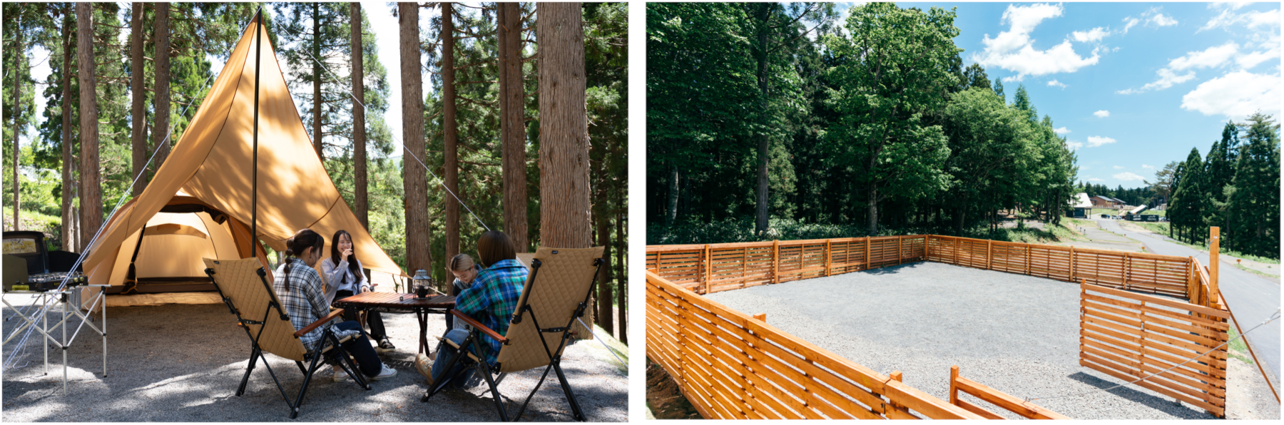 アルペン、標高1000mのキャンプ場に愛犬と宿泊できるグランピング施設や新サイトを増設