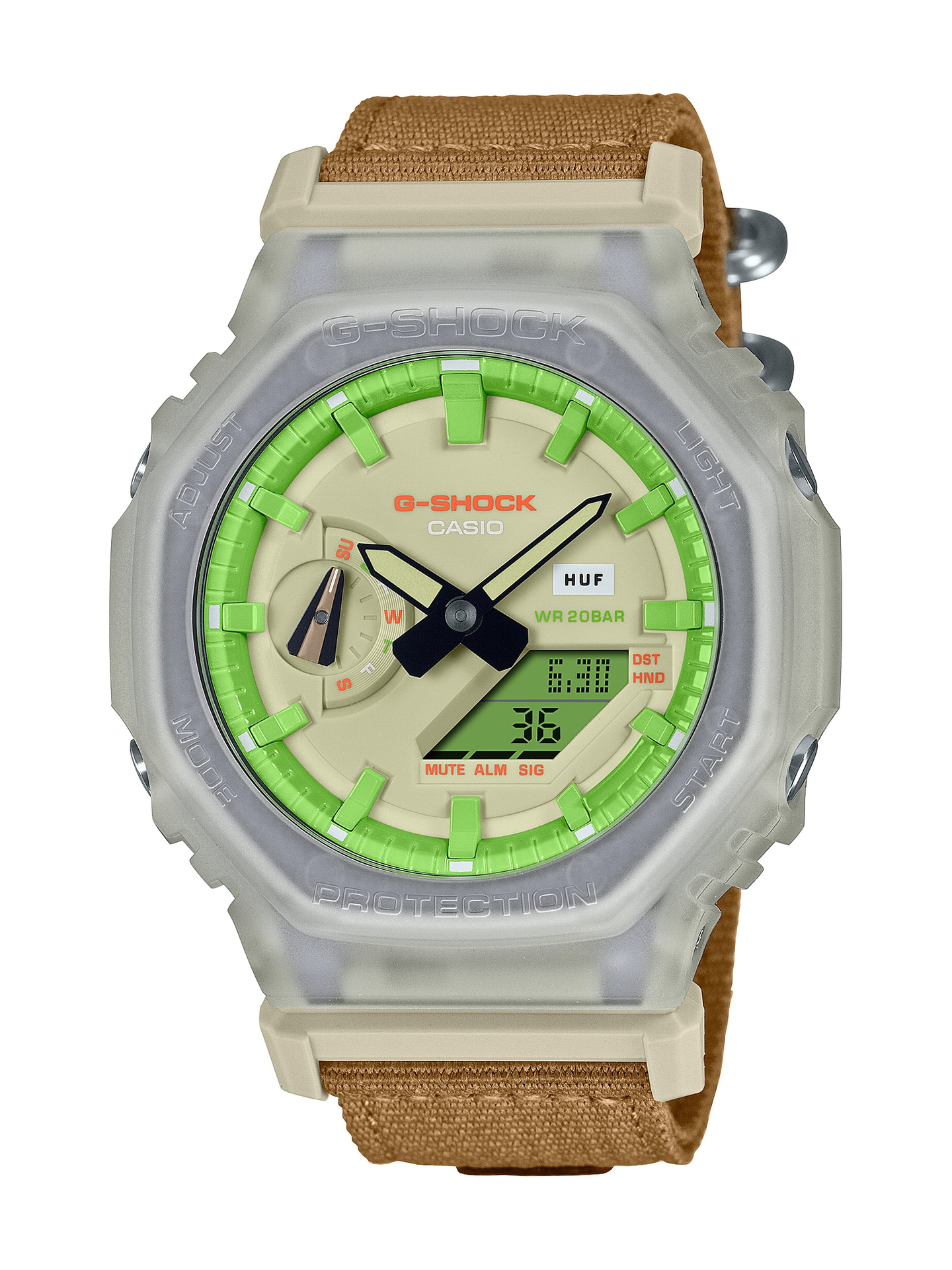 G-SHOCK、HUF20周年を記念したグリーンとオレンジのコラボモデル。ベースは「2100」シリーズ(9/12)