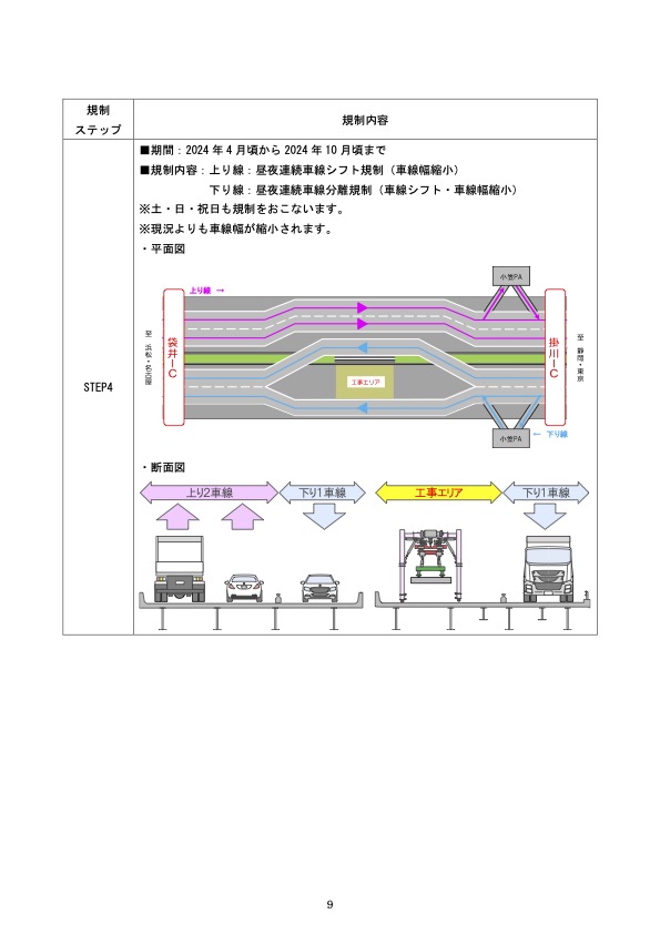 東名 掛川IC~袋井ICリニューアル工事で昼夜連続車線シフト規制・昼夜連続車線分離規制など(7/9)