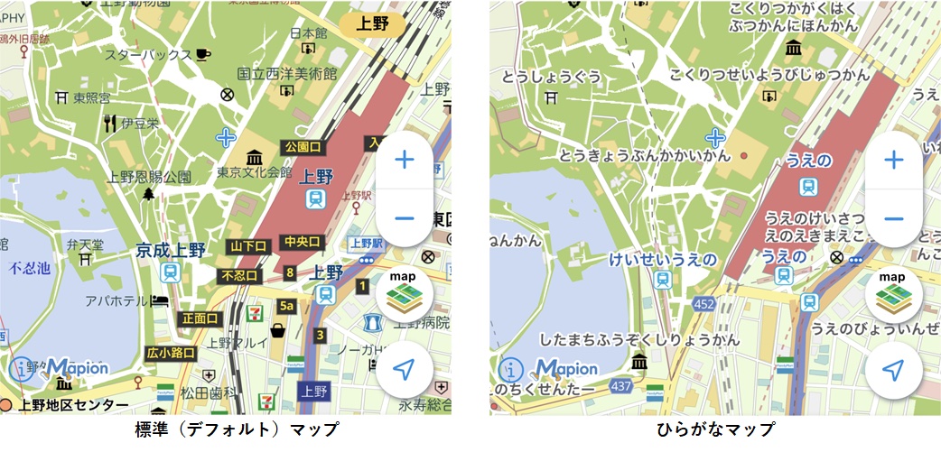 iOS版の地図マピオン、ひらがなだけの地図を搭載。難読地名の確認などに(3/4)