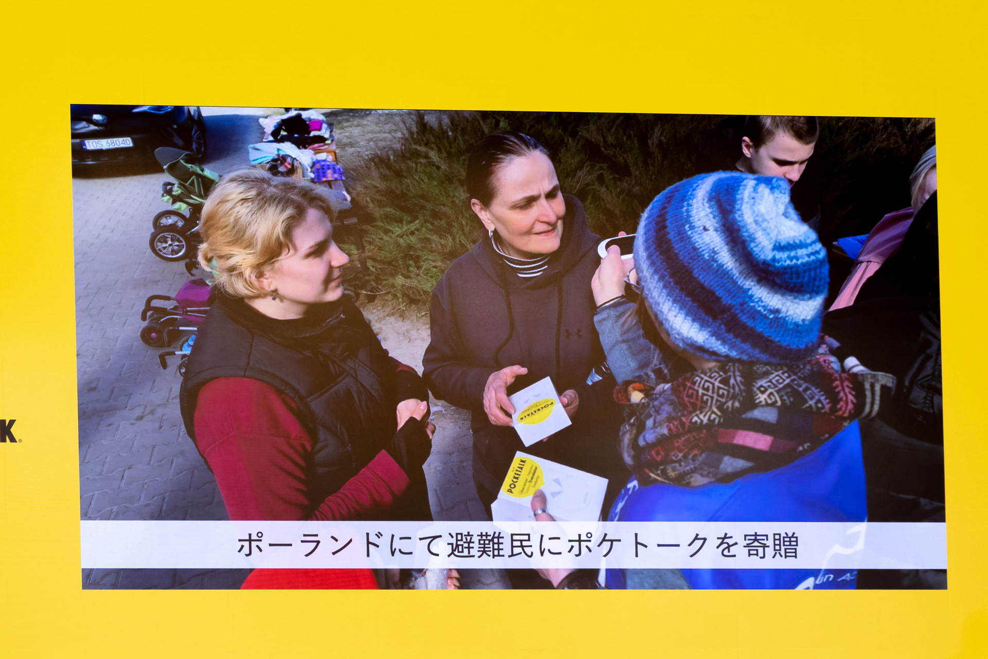 翻訳内容を音声にして出力してくれる「ポケトーク同時通訳」今冬提供。「音声付きは理解に3倍の差」と松田社長(14/18)